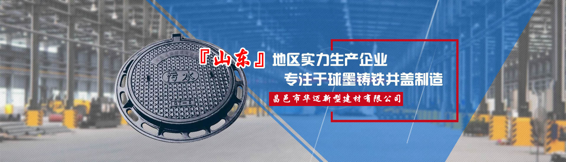 昌邑市華邁新型建材有限公司位于世界風箏之都—山東濰坊,公司前身:昌邑華邁井蓋鑄造廠,這里鑄造產(chǎn)業(yè)集群物流園區(qū)集群、交通便利、緊靠濰坊火車北站、附近眾多物流園。公司主要鑄造產(chǎn)品:球墨鑄鐵井蓋、市政井蓋、污水井蓋、雨水井蓋、六防、五防井蓋、防沉降井蓋、隱形井蓋、電力檢查井蓋、熱力井蓋、窨井蓋、雨水篦子、鑄鐵溝蓋板、鑄鐵花墻等,產(chǎn)品用料厚實壽長。